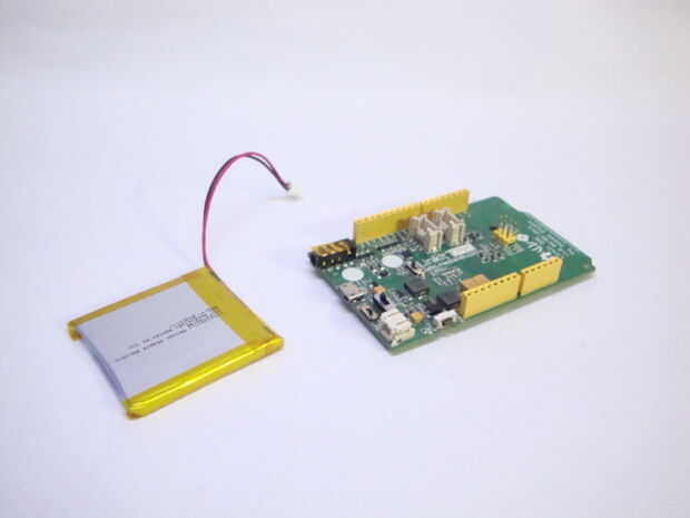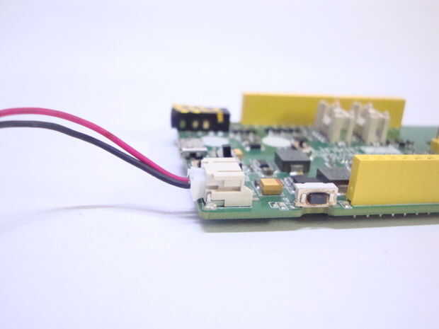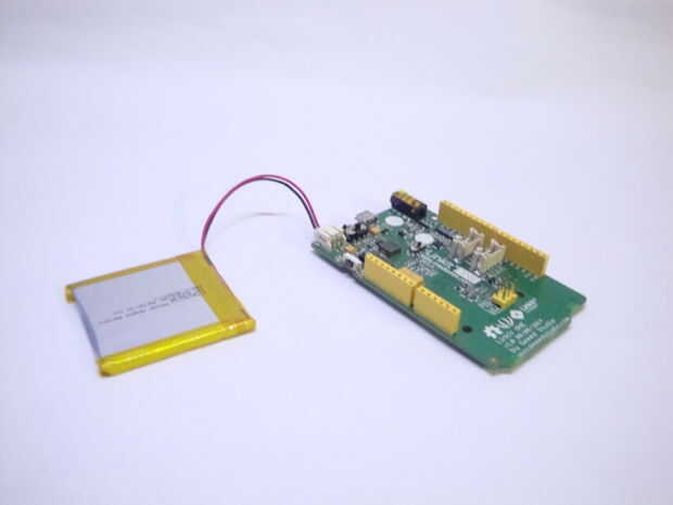 El primero o el paso muy básico es para conectar la batería de ion de lithuim con el linkit uno a la Junta. Hacerlo conectando directamente a su respectivo socket.