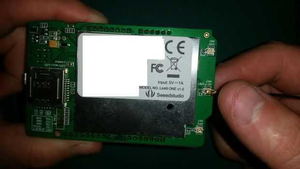 Gire LinkIt uno tablero sobre y cerca de la gran muestra de CE y FCC, verá tres piezas idénticas de redondeos pequeña.