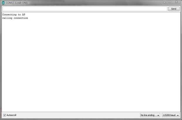 Esto hará que, el código de inicio sin necesidad de que el puerto serie para inicializarse antes de. Subir este código modificado a su LinkIt uno. También puede utilizar la pila incluida pero no he probado cuánto va a trabajar usando eso.