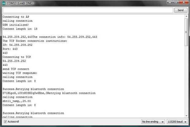 Arriba es un ejemplo de una conversación entre el LinkIt y mi smartphone