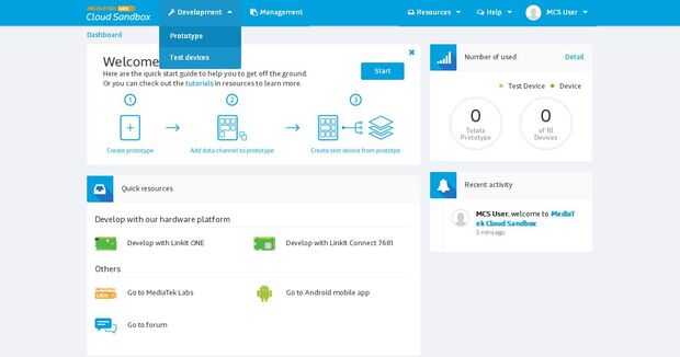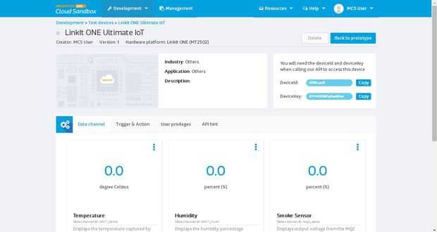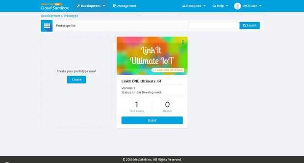 Para utilizar el sistema de MediaTek nube Sanbox con su uno de LinkIt, tienes que configurarlo. Voy a intentar describir cada paso de este detalle, pero es mejor si usted va a través del tutorial de Mediatek para LinkIt uno. De esta manera, usted estará familiarizado con el proceso que estamos a punto de hacer. Explico cada paso en detalle a continuación: