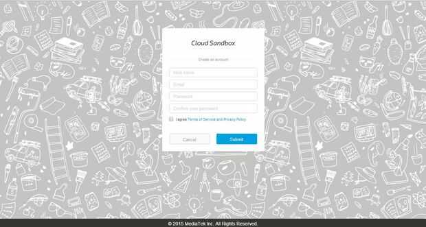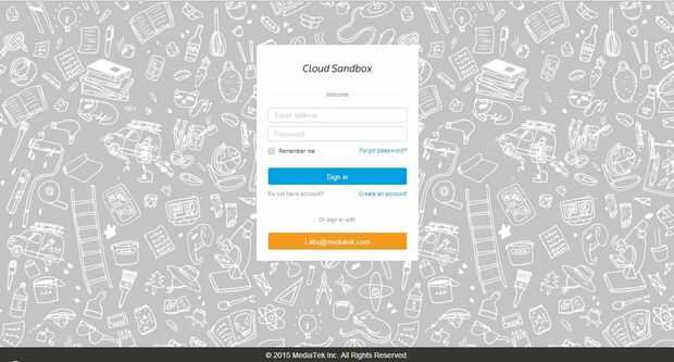 Sesión, o hacer una cuenta en laboratorios de MediaTek o MediaTek nube Sandbox, si no tienes uno. La cuenta hecha en los laboratorios de MediaTek puede utilizarse para iniciar sesión en el entorno limitado de nube de MediaTek, así que es mejor usar o hacer que uno sólo.