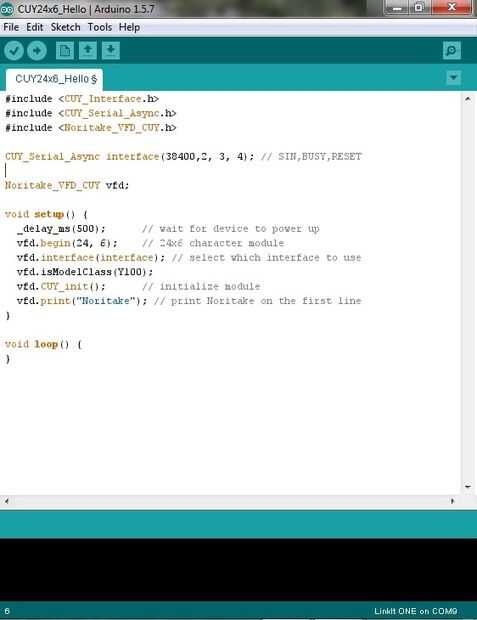 Interfaz de CUY_Serial_Async (38400,3, 5, 7); Velocidad en baudios, pecado, BUSY, RESET