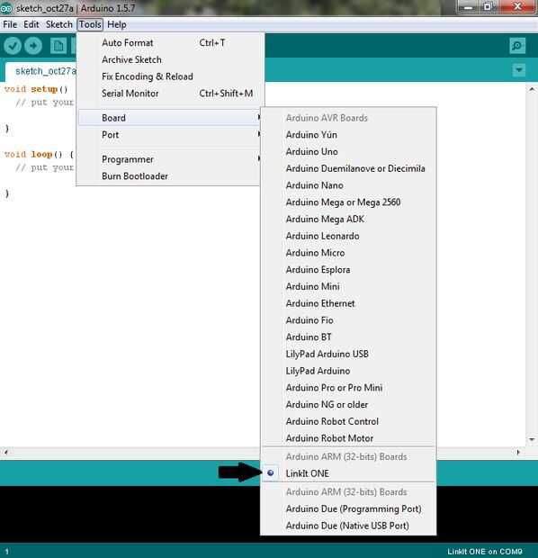Después de instalar uno de LinkIt al ordenador abrir sketch de Arduino.