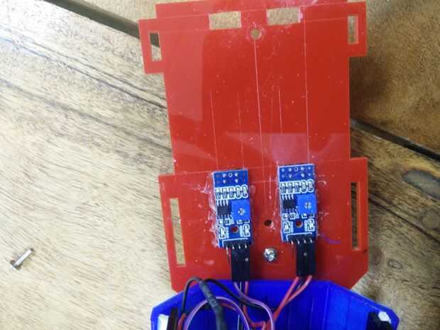 Coloque una rueda esférica a la Junta de espalda frente al robot con algun pegamento.
