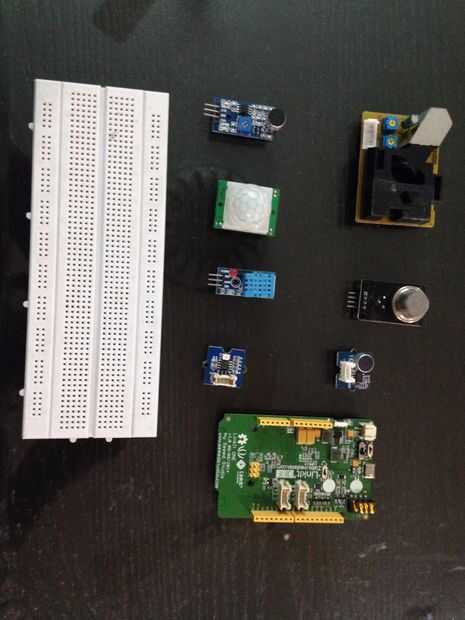 (Estoy usando sensor sonoro, sensor de movimiento PIR, sensor de calidad de aire, DHT temprature sensor, sensor de polvo etc.).