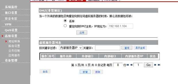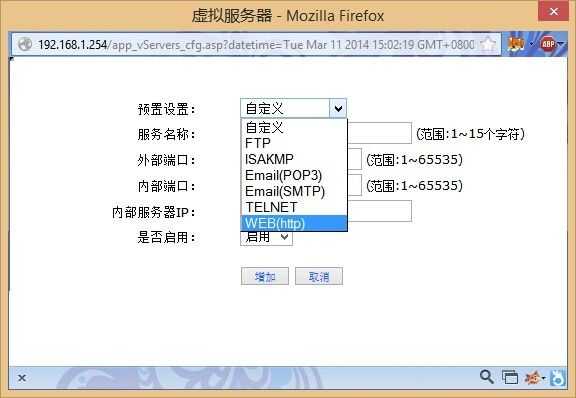 Haga clic en el botón Agregar, se establece el valor predeterminado de WEB y FTP (2 nuevas), IP del servidor interno es IP de Arduino.