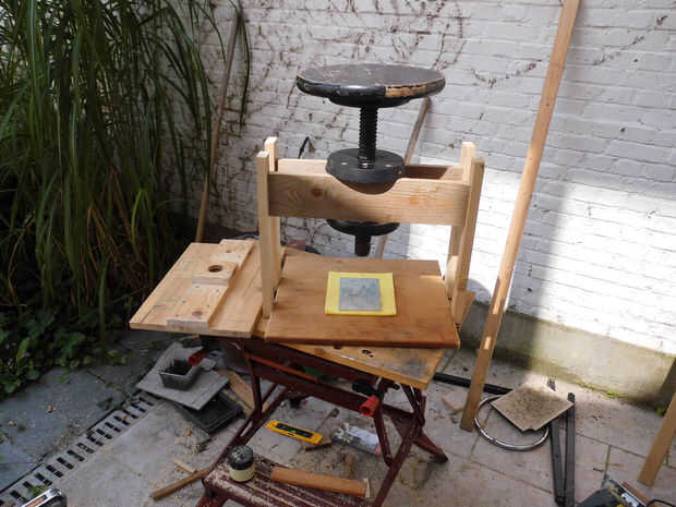 Probar con dos, con el corte de linóleo. Para una mejor impresión, es mejor que colocar un trozo de fieltro en el lino. Esta imagen es realmente una mala configuración, como lo veo ahora... Realmente debe colocar el papel sobre el fieltro, el lino en la parte superior...