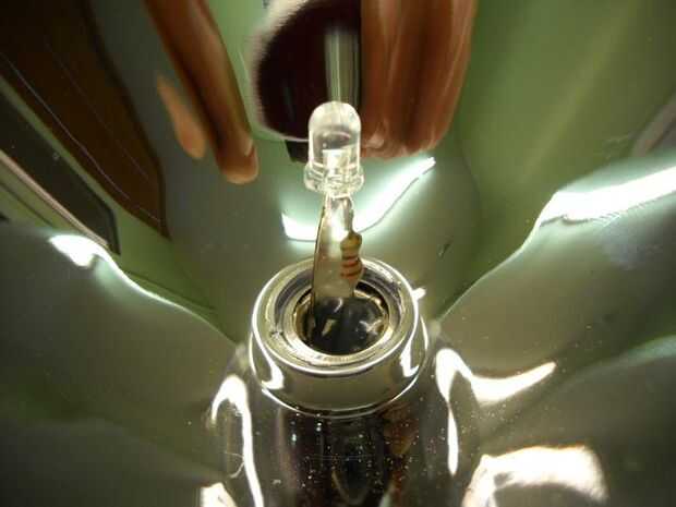Puede Agregar los cables al LED y resistencia y la soldadura directamente a los contactos del bulbo en lugar de actualizar el foco real. Si usted decide hacer esto, necesitará quitar el resorte que se utiliza para hacer contacto con el bulbo.