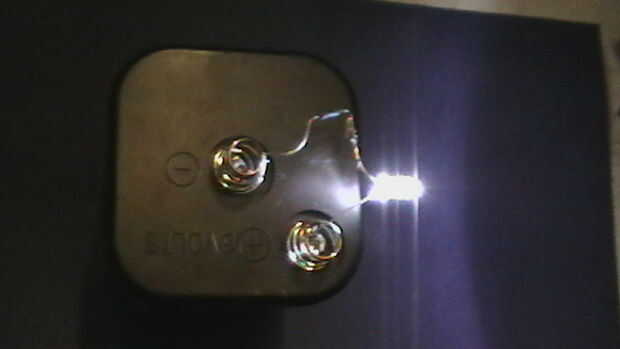 Qué pasa si usted necesita uno de estos linterna ahora (emergencia). Bien, en una pizca puede hacer la versión de MacGyver si tienes las piezas para hacerlo. Ver la imagen de la no soldadura / sin linterna, una luz de emergencia. Por día 3 o 4 de este desastre será la envidia de todos los vecinos. Por esta razón es bueno tener a mano baterías, LEDS y resistencias.