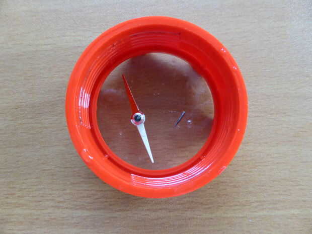 Tome el imán de la brújula abandonada y el polo positivo de la marca.