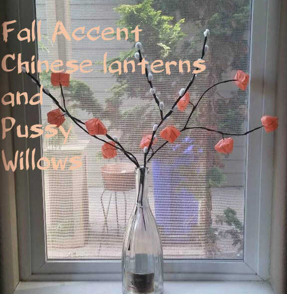 Me encanta flores de linterna China. Son una excelente caída flor de acento sin ser excesivamente llamativo o molesto. Y son increíblemente fáciles de hacer con papel, porque ya se ven como están hechas de papel. Yo les junto con una ramita de sauce coño súper sencillos y una botella de vino que servirá como parte de lo centro de mesa para mi boda en octubre. Este tutorial es para centro de mesa específicamente, pero esto es un arte extremadamente flexible. Hacen más ramitas, no menos. Hacer verde en lugar de brown. Tal vez que estás a sólo aquí por los sauces coño. ¡Genial! Los de arriba yo mismo pensé que.