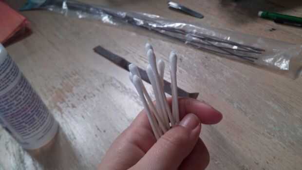 Hacer esto por un puñado de palitos. Necesitarás sobre 12-14 hisopos para la rama entera.