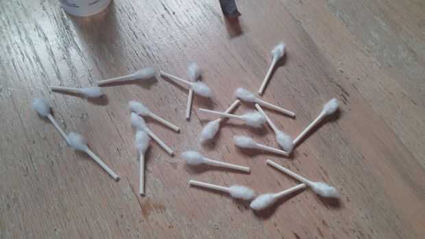 Agregar los hisopos de punta a punta, de modo que tan pronto como termine de envolver una torunda, empiezas a envolver el siguiente.