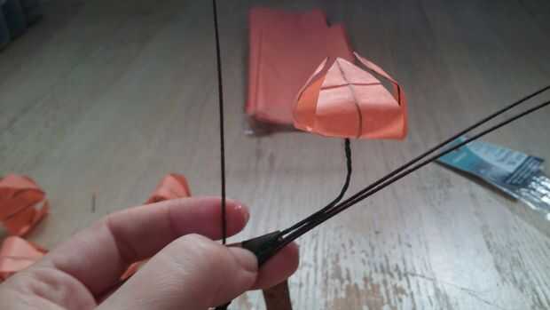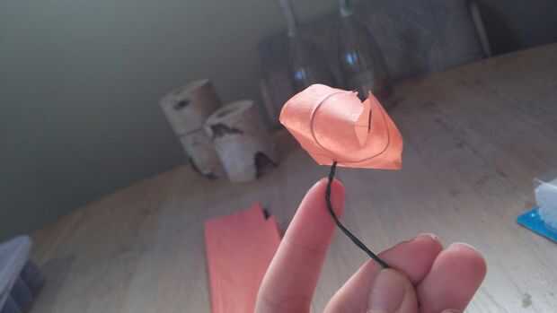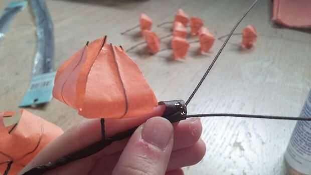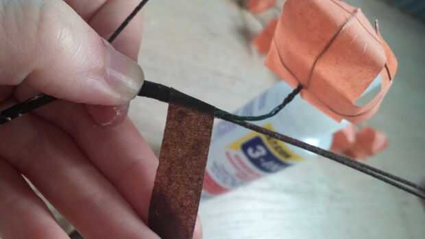 Doblar el tallo de flor cerca de la base de la flor, luego coloque a lo largo del palo. Agregue pegamento y envolver para arriba! Más apretado el abrigo, la más firmemente sostenido que será la flor.