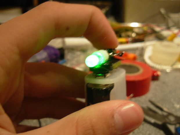 Presione el interruptor. Si todo va bien, el LED se encenderá. Si no es así, asegúrese de que la polaridad es correcta a lo largo y que la batería todavía tiene una carga en él. Después de que las cosas son fijas, inténtelo otra vez. Debe encenderse para arriba brillantemente. Algunas modificaciones que podrían introducirse para optimizar esta poca luz para andar en bicicleta están cambiando el interruptor de una momentánea táctil a un palanca o corredera. También podría cambiar el LED por uno intermitente se hacen más notorias. No se olvide de comentar!
