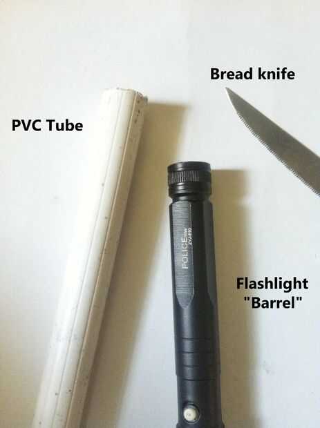 1 Corte el PVC según el tamaño del cañón de su linterna., altura y diámetro del tubo de PVC depende de la linterna para uso.