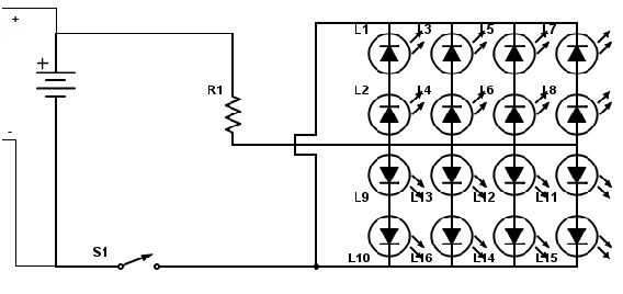 Comience uniendo los dos extremos alejados del panel LED junto con una sola pieza de alambre de cobre. Si eres bueno en la lectura de circuitos, el esquema será de gran ayuda aquí. El objetivo de esto es unir las derivaciones negativas, haciendo un toque único y más grande.