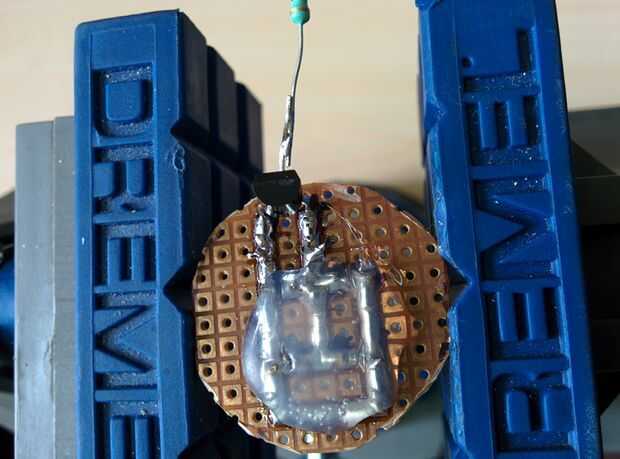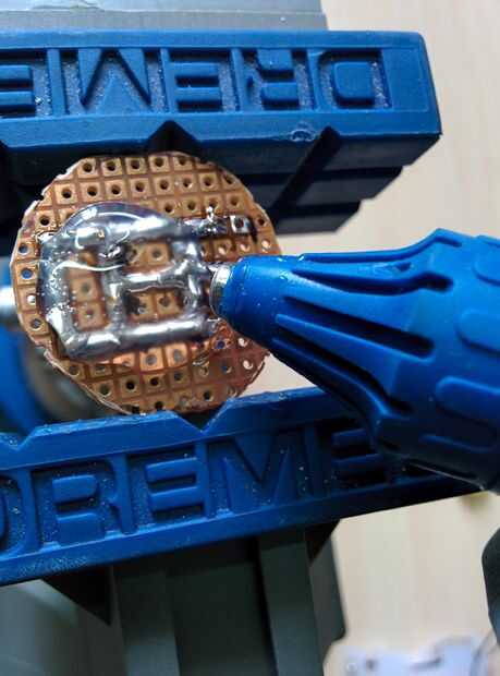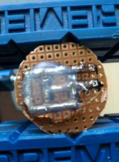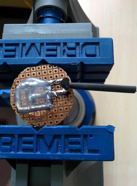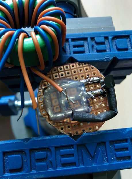 Ahora vierta suficiente pegamento sobre la soldadura entera y coloque el toroide de ferrita sobre él.