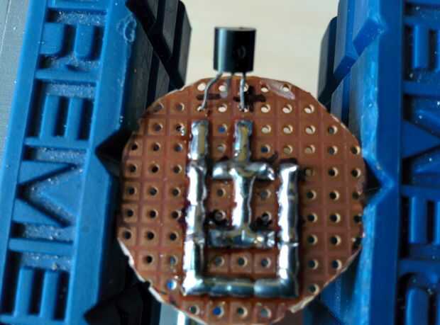 El extremo inicial del cable azul es la soldadura a la terminal de colector del transistor.
