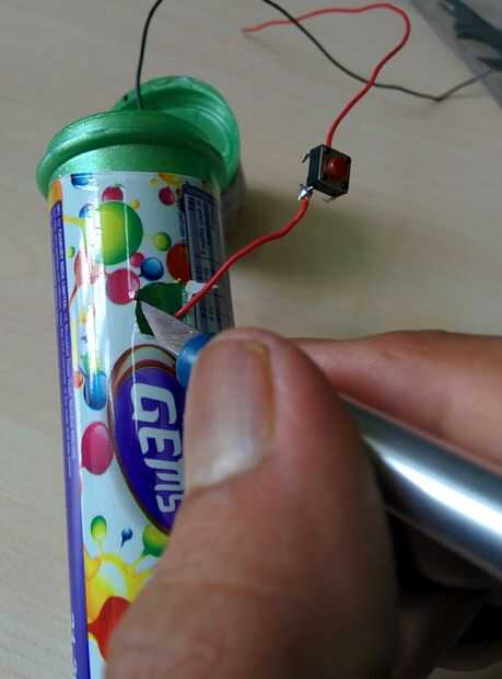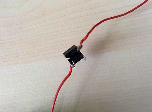 Soldar otro cable rojo (2 a 2cm) a la otra terminal del interruptor.