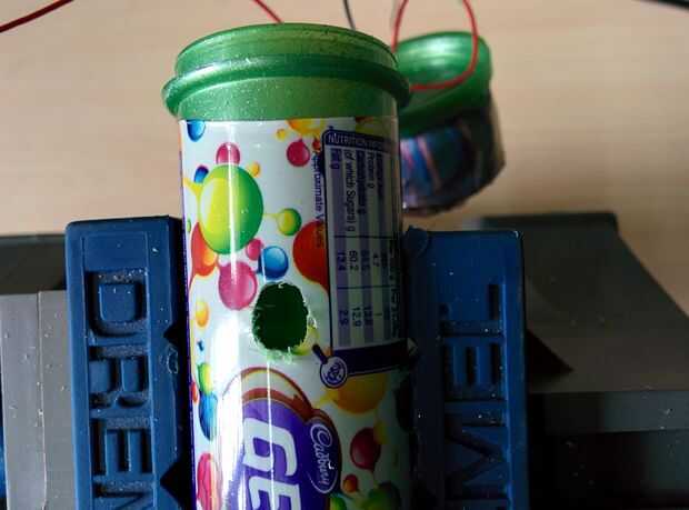Hacer un agujero justo 2.5 cm debajo de la tapa de la carcasa. Usé el cuchillo hobby para hacerlo.