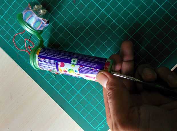 Ahora, suelde el cable rojo del interruptor al borne positivo de la batería y el cable negro de la pcb con el terminal negativo de la batería.