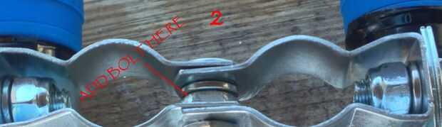Ahora con dos linternas apuntando en la misma dirección juntar las suspensiones & Inserte uno de los pernos a través de la suspensión y luego añadir una tuerca (arandela de seguridad opcional) como se ve en la foto #2