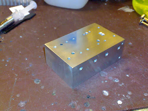 La cara frontal del separador es sólo tan plana como sea posible y tiene agujeros para poder suministrar los cables. Además hay orificios fileteados para scrwes 2-56 utilizados para fijar los LEDs mientras que los curas de epoxy.
