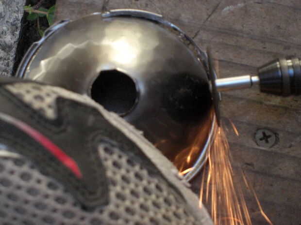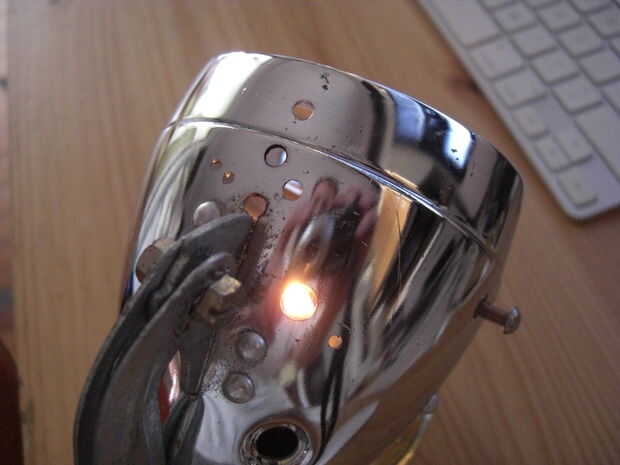 Luz! En su primera luz la llama casi ciertamente ser estrangulada hacia fuera por falta de oxígeno. Ahora puede sacar la lámpara y jugar con la forma de ventilar mejor el farol de luz máxima sin arriesgar la llama soplando el viento azotando por. Empecé con un anillo de agujeros alrededor de la base del agujero del fount de aire al ser aspirado en el alojamiento. también debe poner unos agujeros bastante considerables en la parte superior para humo y calor de ventilación. Después de que usted está manteniendo una llama bastante buena que te puede volver a colocar el reflector hacia la luz si es metal. Tuve que mina vio hacia abajo con una rueda de corte para conseguir en la posición que necesitaba en.