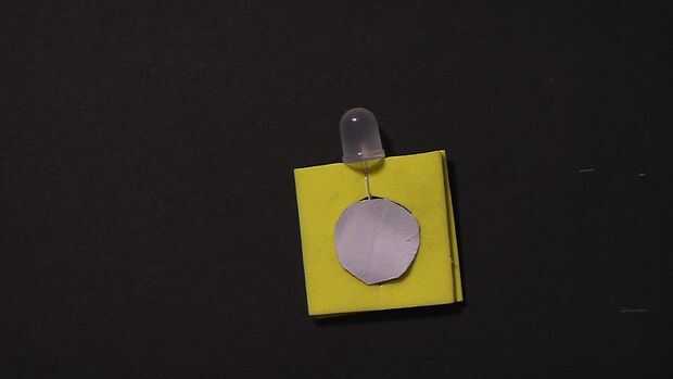 Despegue el revestimiento de uno de uno de los círculos desde el paso 4 y coloque sobre los LED y batería de plomo. Despegue el revestimiento de una de las plazas restantes y adjuntarlo a la espuma de LED de la batería. Sólo presione en alrededor de los bordes, no el centro sobre la batería o de lo contrario usted dobla los cables permanentemente tocar la batería. Repita en el lado opuesto de la linterna. Una vez más, asegúrese de sólo presione alrededor de los bordes, no el del centro sobre la batería.