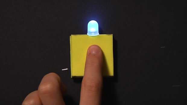 Su linterna de bolsillo es un "interruptor de restricción". Para cualquier circuito eléctrico trabajar necesita tres partes: una fuente de alimentación (batería), una ruta de acceso de electricidad a corriente (conductores de LED) y una salida (LED). Circuitos pueden ser abierto ("off") o cerrado ("on"). El circuito dentro de la linterna está abierto porque el cable de LED no es tocar la batería. Al apretar la espuma y prensa llevar el LED a la batería, se cierra el circuito y enciende el LED.