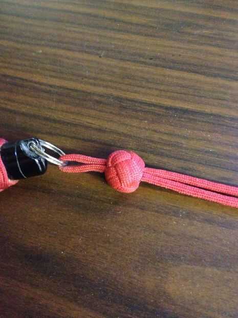 añadí a un nudo de botón chino simple para una cuerda de seguridad que pueden encontrarse en el ABOK como #787 y sólo con un llavero para esto uno. Utilizando la línea de la cabeza de turcos funciona bastante bien también.