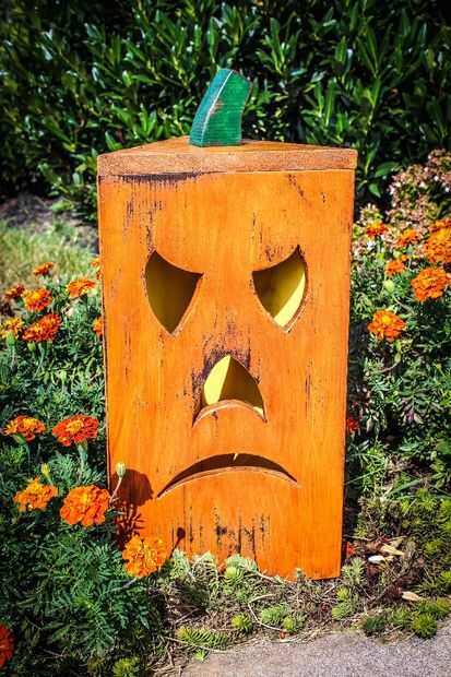 Esta linterna de calabaza triangular podría ser una buena adición a tu decoración de Halloween. Habilidades básicas de carpintería son necesarios cuando se trabaja con la madera, como se puede ver en las direcciones que siguen. Para dar la linterna de un aspecto muy envejecido, el acabado rústico utiliza varias capas de pintura, lijado basto y luego una capa exterior de la mancha roble. Una capa final de barniz/laca sella el final. Puesto que la calabaza se hace de la madera, sugiero utilizar luces de té LED para la iluminación. Entonces, establecido el farol de calabaza para que todos puedan disfrutar!