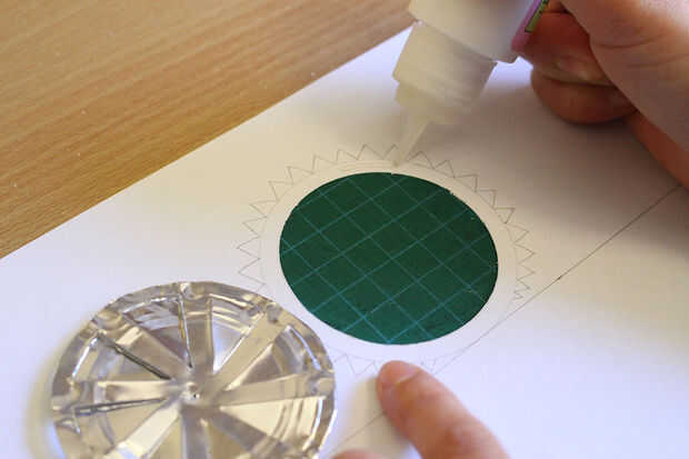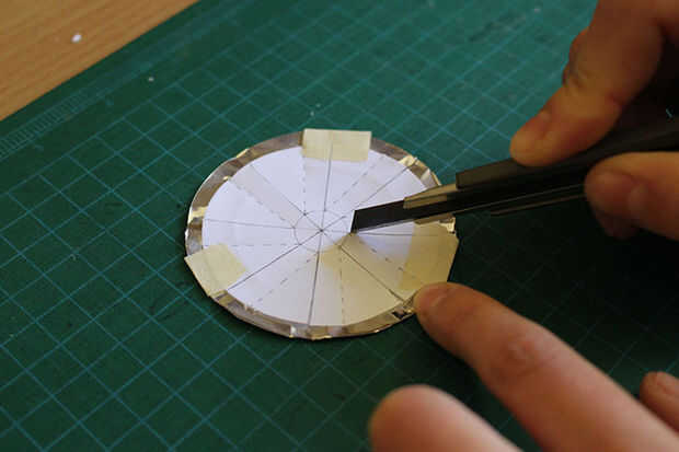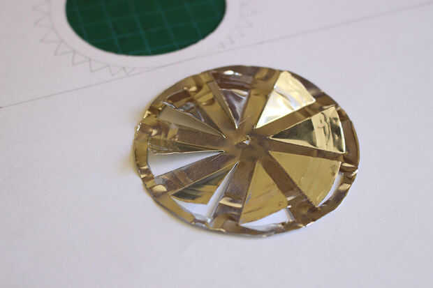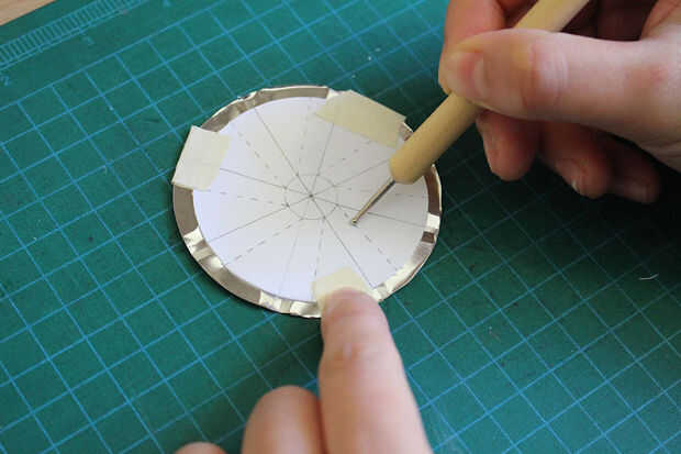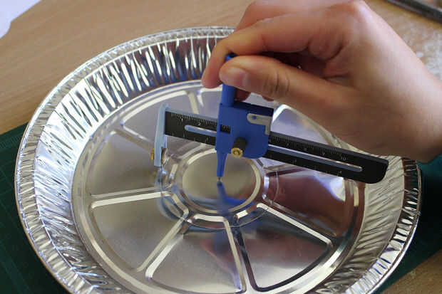 Y cortar un círculo de la tartera de aluminio con el mismo radio con parte superior de la linterna.