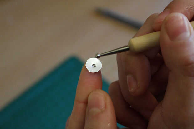 Utilizar la brújula navaja para cortar el círculo más pequeño.