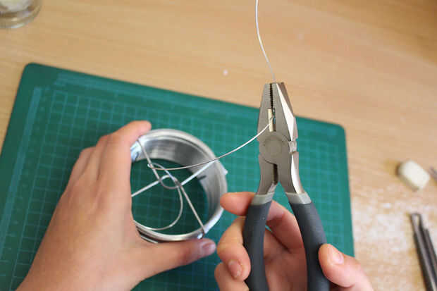 En primer lugar, usar alambre para hacer un marco de pivote que puede caber la apertura de la jar.