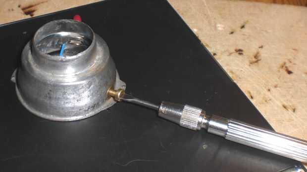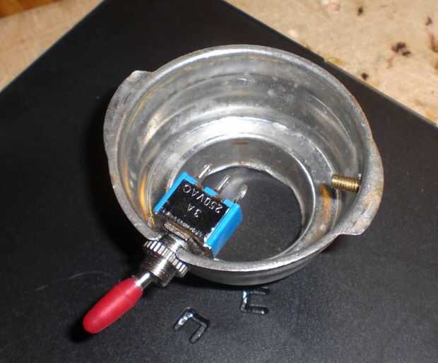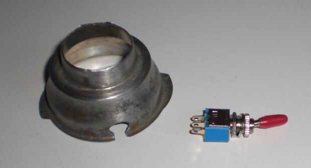 Ahora verá en el anillo circundante un pequeño agujero para el mecánico de tornillo mecha. Con un roundfile haces este agujero más grande para que se ajuste el interruptor. Eso es él. Entonces agujero un 2,5 mm de diámetro para srewing un tornillo de latón de 3,0 mm en conectarse más adelante un alambre para la electrónica.