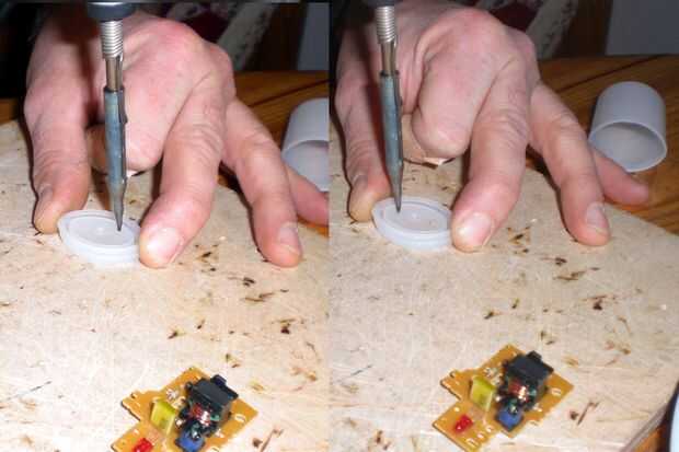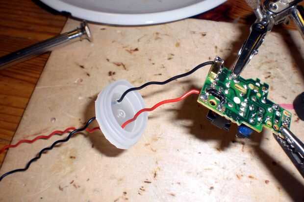 Otro detalle es soldar el switch en el rojo alambre de línea (plus) a la batería (circuito baja tensión). Aislar los extremos de alambre soldadas al interruptor con una manguera que encoge. Asegúrese de que el contacto de la parte inferior de la bombilla de vela (circuito de alta tensión) también está aislado contra las partes metálicas de la lámpara para evitar choques de voltaje alta!!!!!!