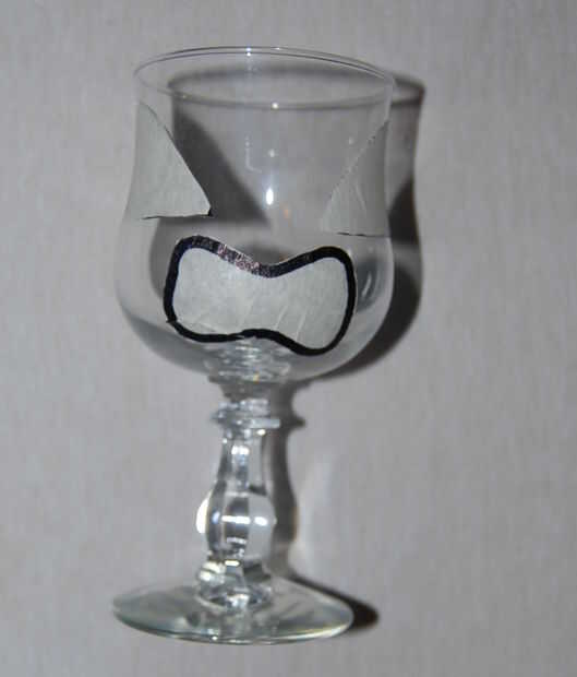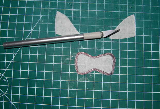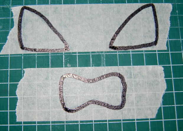• Cortar los ojos y la boca fuera de la cinta adhesiva con un cuchillo del exacto.