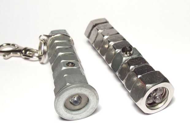 " Plata soldar las tuercas entre sí: Esto permitirá que la electricidad pase a través de la pared (tuercas) de la linterna y hará todo mucho más duradera. Así no tendrá que preocuparse por el cable positivo (uno rojo) conseguir enredado en la primavera, y creará un final mucho más limpio.