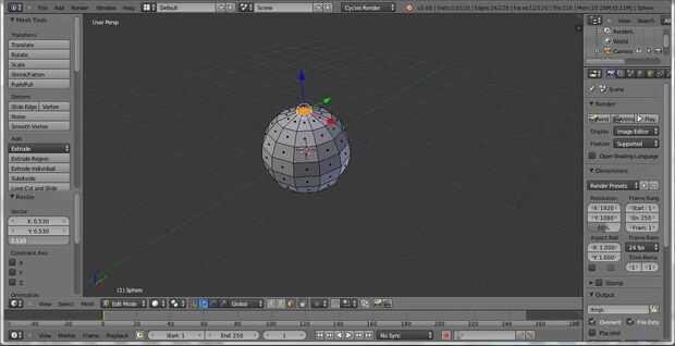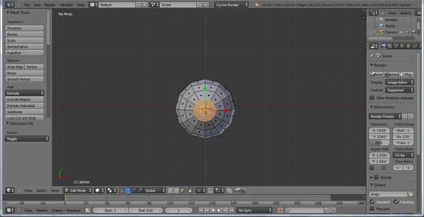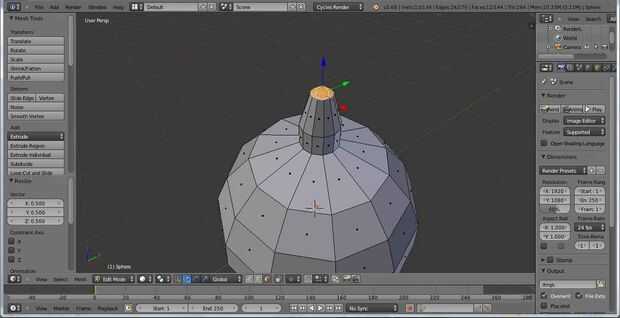 Presione S en el teclado para escala hacia abajo de las caras superiores. Pulsando el botón período, el número 5 y la tecla del número 3 en el teclado, puede escalar las caras hacia abajo al 0.530. Prensa E en el teclado para sacar las caras superiores. Apreto Z en el teclado para restringir la extrusión a la Z, o la parte superior, eje. Luego mueva el ratón hacia arriba un poco hasta que las caras superiores forman un tallo. I Minas sacó otra vez, lo redujo un poco y sacó otra vez.