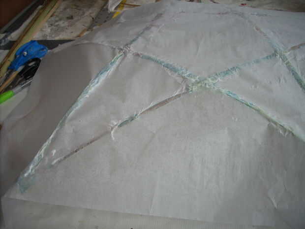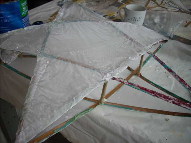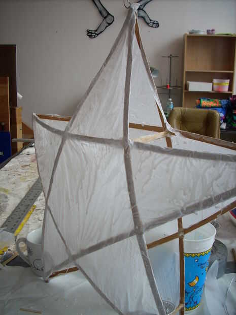 3) cuando estás cubriendo una complete el lado de la estrella, tome su cepillo y con una ligera capa de pegamento. Al principio esto hará que sea más vulnerable al desgarro sin embargo cuando se seca va a ser mucho más fuerte.