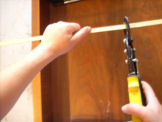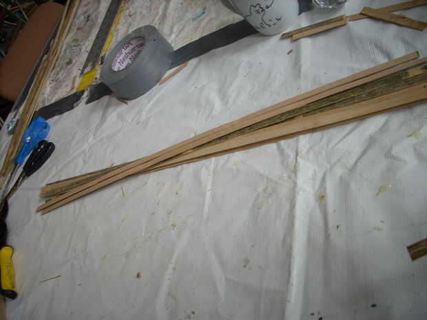 Tomar las tijeras de jardín, bambú plana y corte 10 pedazos de la misma longitud.