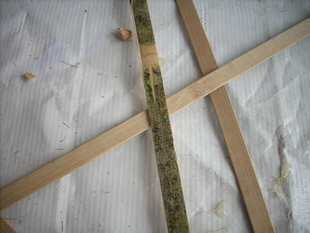 TIP: Intentar hacer por lo que las piezas de bambú se alternan sobre/bajo. Esto hará que la estructura más fuerte si las tiras están creando una especie de en y hacia fuera de la armadura. Espero que las imágenes con claridad.