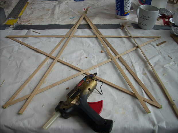 Después de ser satisfecho con ambas de las dos estrellas que pegue otro puntos de intersección (hexágono en el medio) junto con el pegamento pistola (ver imágenes).