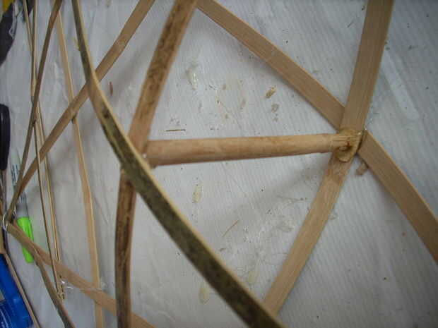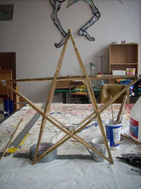 A continuación, se estiran las formas estrellas creando espacio para el peg. Prueba de la elasticidad de la estructura. Verá que puede tomar mucho más de lo que crees. Las clavijas van en las esquinas del hexágono.
