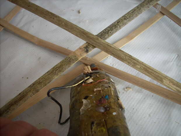 Poner un poco de pegamento caliente en la parte inferior de la zona donde tienes que poner la clavija. Y luego un poco en la parte superior de la clavija. Coloque la clavija en y mantener constante durante unos segundos para asegurarse de que es estable.