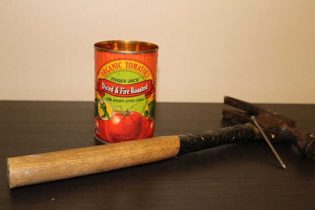 El otoño es una temporada maravillosa pero como los días más cortos, hay menos luz que activa al aire libre. Hazte un Cantern™ (linterna de lata) y alegrar las noches oscuras...Paso 1: Lo que usted necesitaLo que necesita es un martillo, un cuchillo