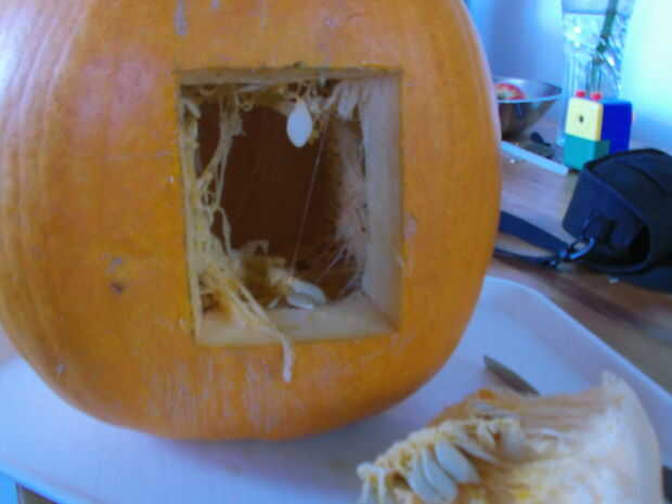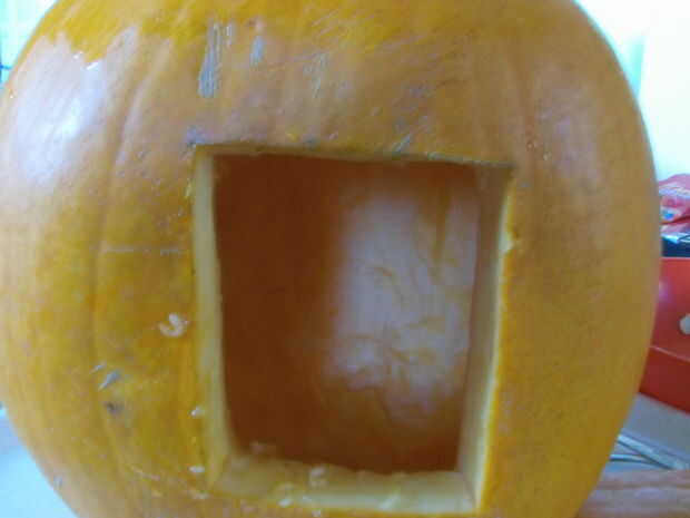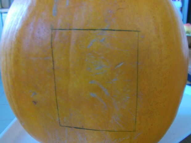 1. dibujar un rectángulo en el lado más feo de la calabaza.